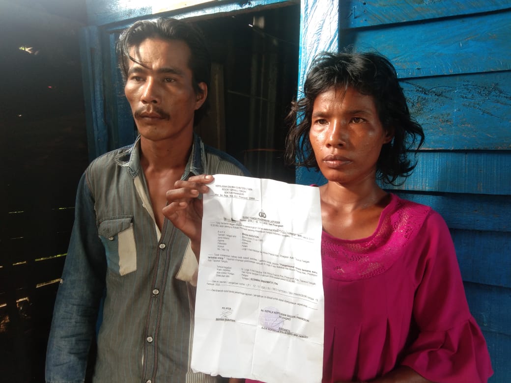 Terlapor atau pelaku Rosmina Simarmata warga Lingkungan II Aek Nabobar, Kelurahan Albion Prancis, Kecamatan Pinangsori, Tapteng yang tak lain adalah saudara korban sendiri resmi dilaporkan ke Polsek Pinangsori pada Kamis (13/02/2020) lalu, dengan membuktikan secarik kertas surat tanda penerimaan laporan nomor STPL 12/II/2020/Sek Pinangsori.