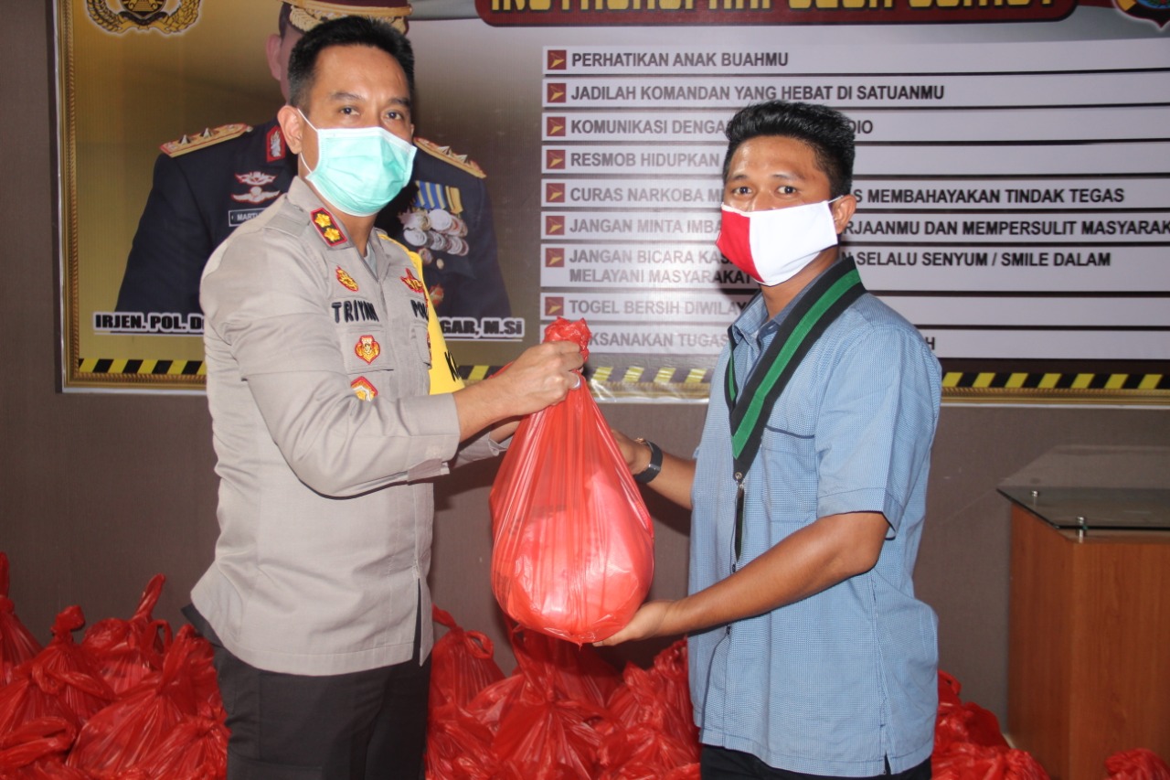 Dalam rangka suasana bulan suci ramadhan 1441 Hijriah 2020 M, Kapolres Sibolga menyerahkan 105 bantuan sosial berupa sembako dalam upaya Polri Peduli kepada warga akibat dampak Covid-19, pada Sabtu (17/05).