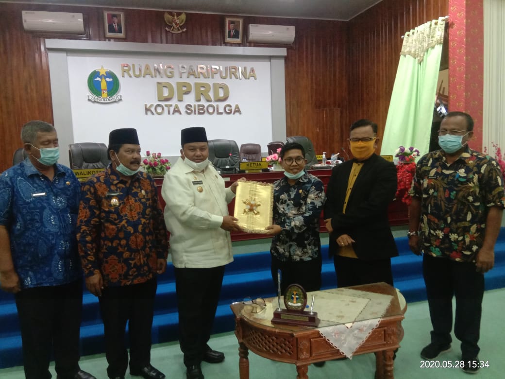 Wali Kota Sibolga Drs Syarfi Hutauruk, menerima rekomendasi DPRD atas Laporan Keterangan Pertanggung jawaban (LKPJ) Tahun Anggaran (TA) 2019.