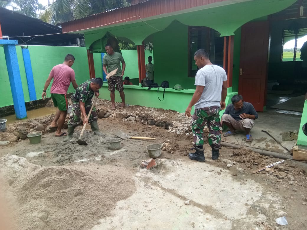 “Kami sangat berterimakasih kepada anggota TNI yang sudah membantu kami semua dalam memperbaiki lantai masjid sampai selesai,” ujarnya.