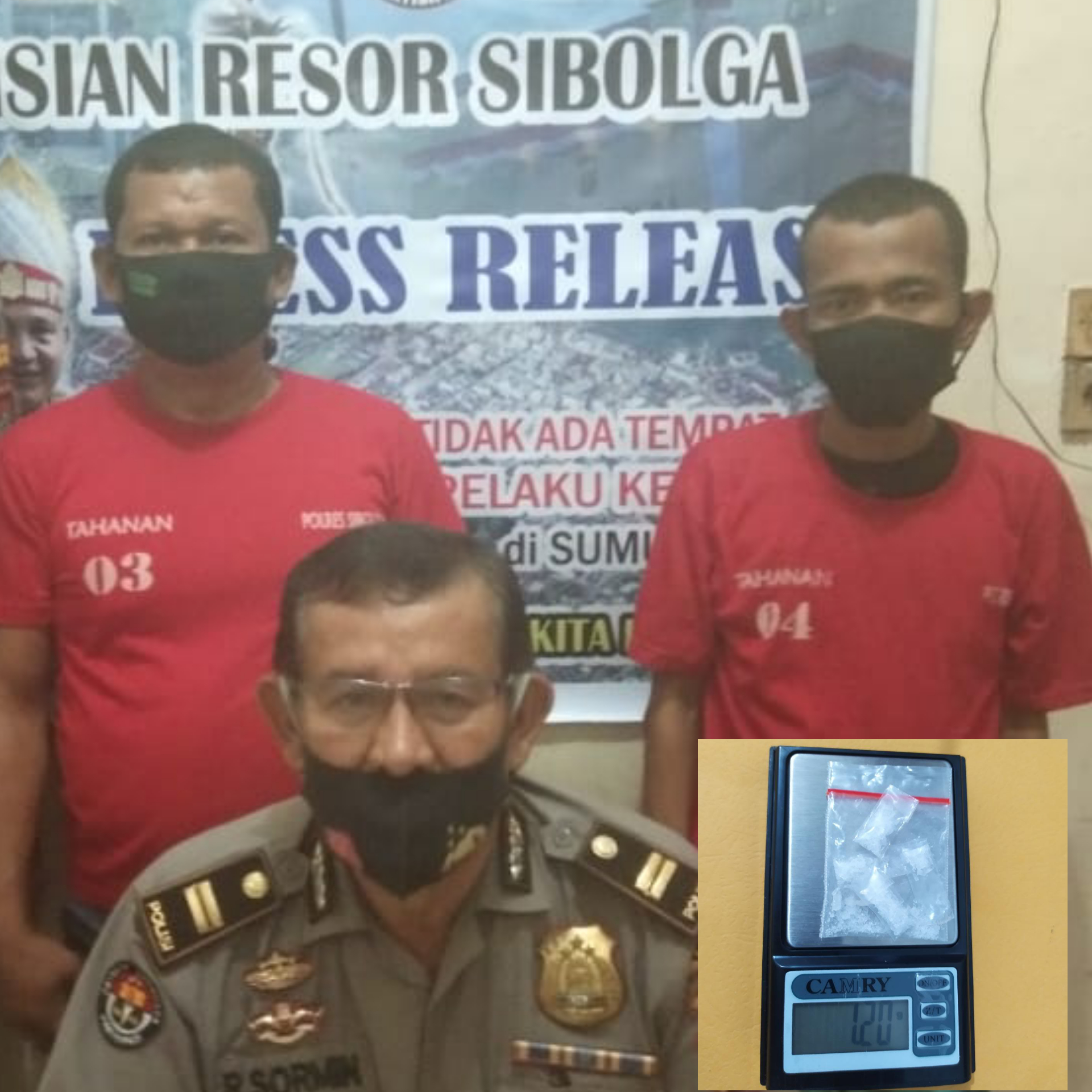 Kapolres Sibolga, AKBP Triyadi, dalam keterangannya melalui Kasubbag Humas, Iptu R Sormin mengatakan, kedua pria itu ditangkap karena terindikasi kasus Narkotika jenis sabu-sabu. Dari tangan mereka ditemukan 5 bungkus sabu-sabu dan alat yang diduga digunakan keduanya untuk mengkonsumsi sabu-sabu, berupa 2 unit pisau lipat, 1 unit mancis, 1 batang bambu kecil terpasang pipet plastik ujung runcing.