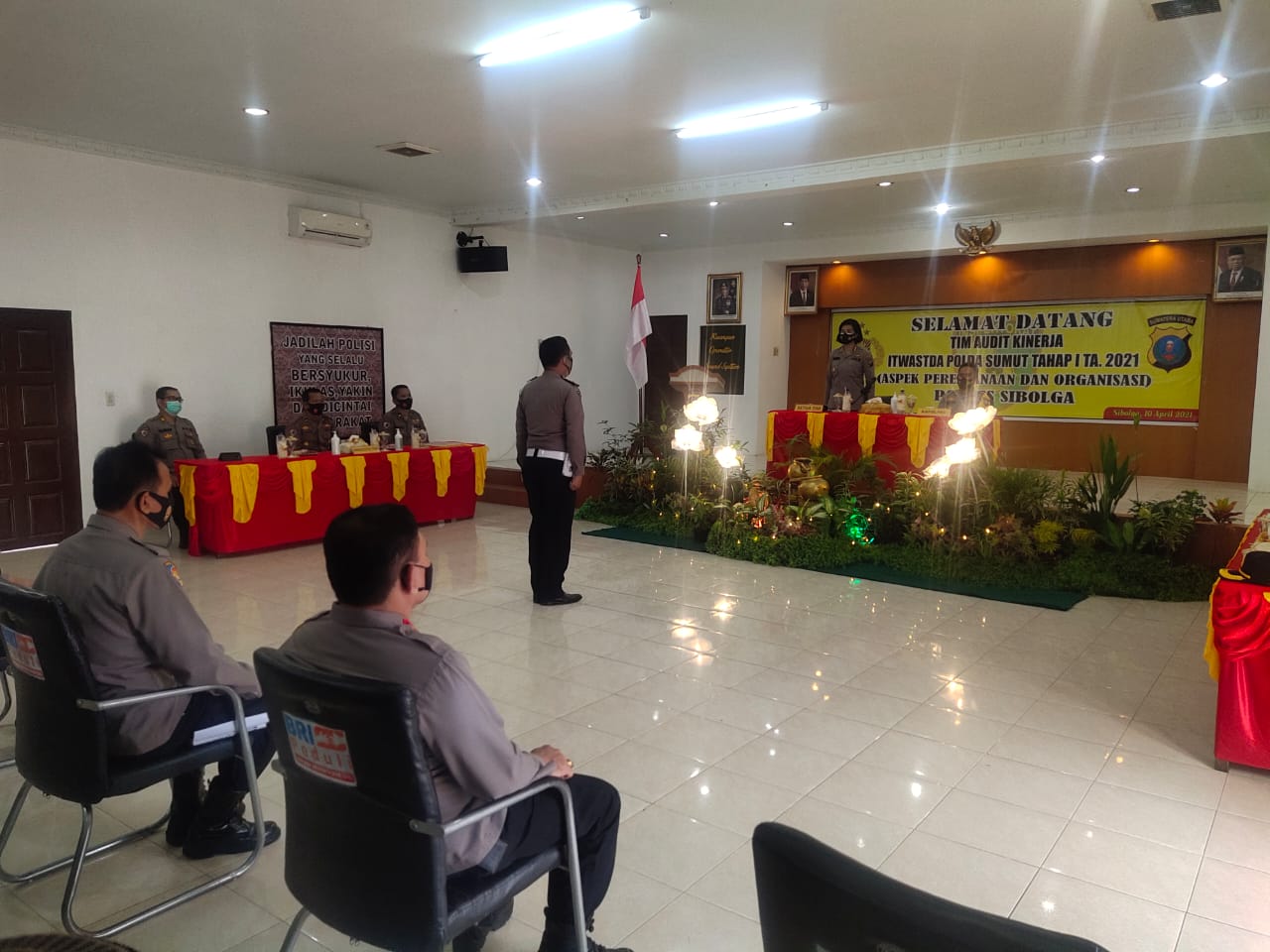 Dalam rangka pelaksanaan Audit Kinerja Tahap I Tahun 2021, Polres Sibolga menerima kunjungan oleh Tim Audit Kinerja dari Inspektorat Pengawasan Daerah (Itwasda) Polda Sumut dalam agenda melaksanakan audit di bidang aspek perencanaan dan pengorganisasian yang digelar di Aula Wira Pratama Polres Sibolga, pada Sabtu (10/04/2021).