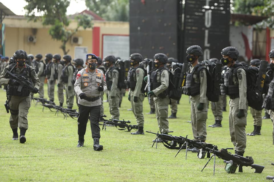 Kapolda Sumut Irjen Pol. Drs. Panca Putra S, M.si memimpin upacara pemberangkatan pasukan Brimob Polda Sumatera Utara dalam rangka Satgas Operasi Amole 2021 BKO Papua. Sabtu (21/08/2021)