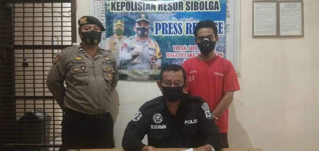Polisi menangkap seorang pria dari sebuah rumah di jalan SM. Raja, Kelurahan Pancuran Kerambil, Kecamatan Sibolga Sambas, Selasa (24/8) sekira jam 9.00 WIB.