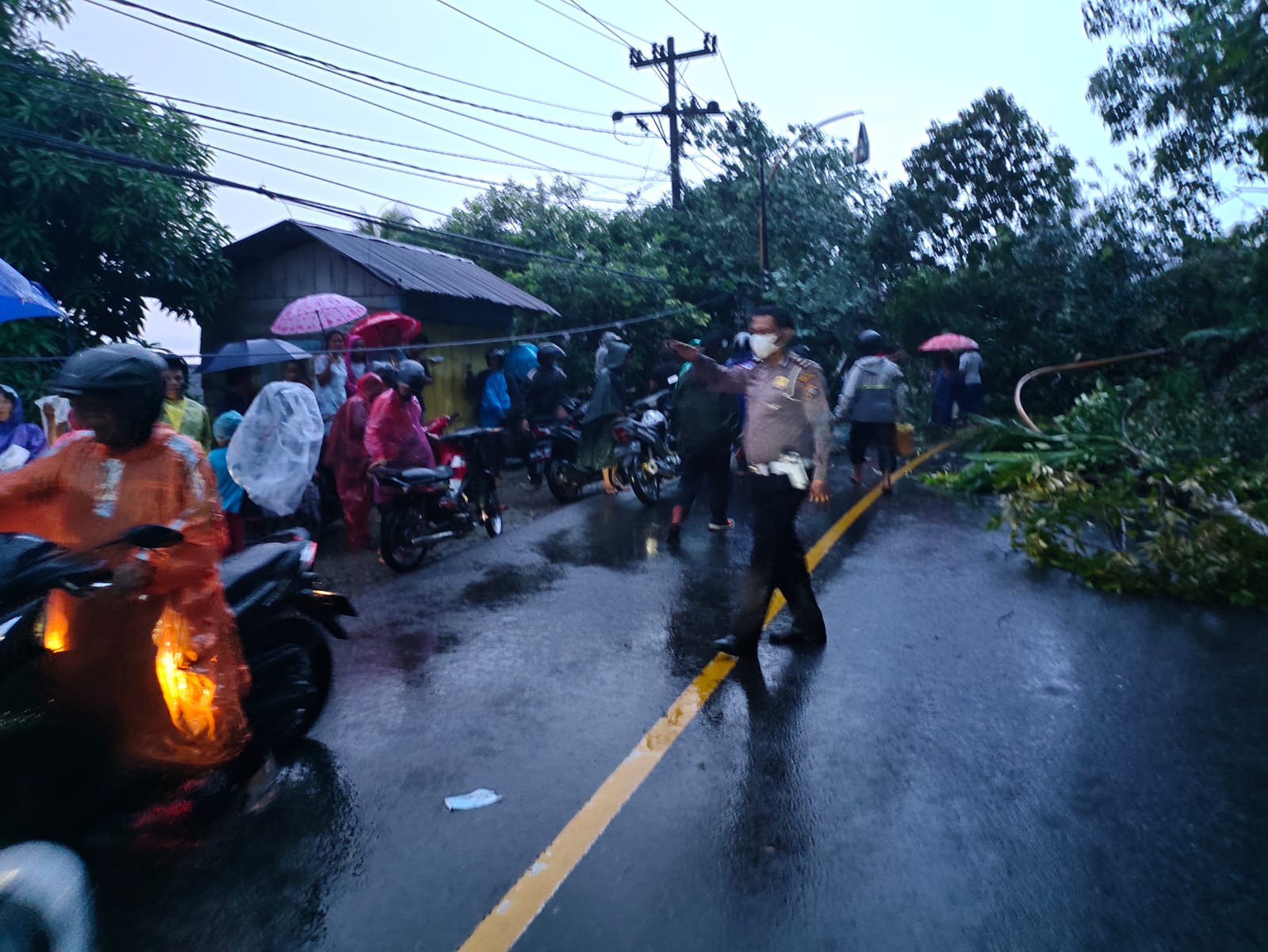 Satu batang pohon besar tumbang dan di susul runtuhnya dinding tebing dengan kapasitas yang agak besar ke arah jalan lintas Sibolga-Barus.