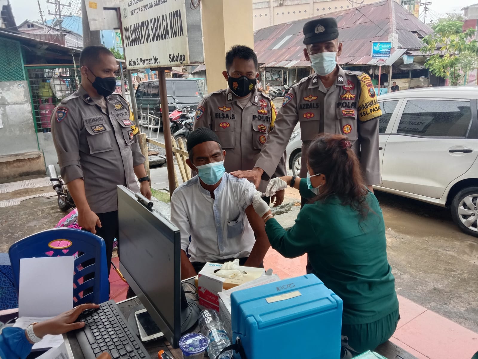 Meskipun dihari libur, Kapolres Sibolga AKBP Taryono Raharja bersama personil tetap melaksanakan kegiatan vaksinasi sekaligus pemberian bantuan sosial (Bansos) kepada Lansia di 4 Kecamatan kota Sibolga, pada Minggu (19/12/2021).