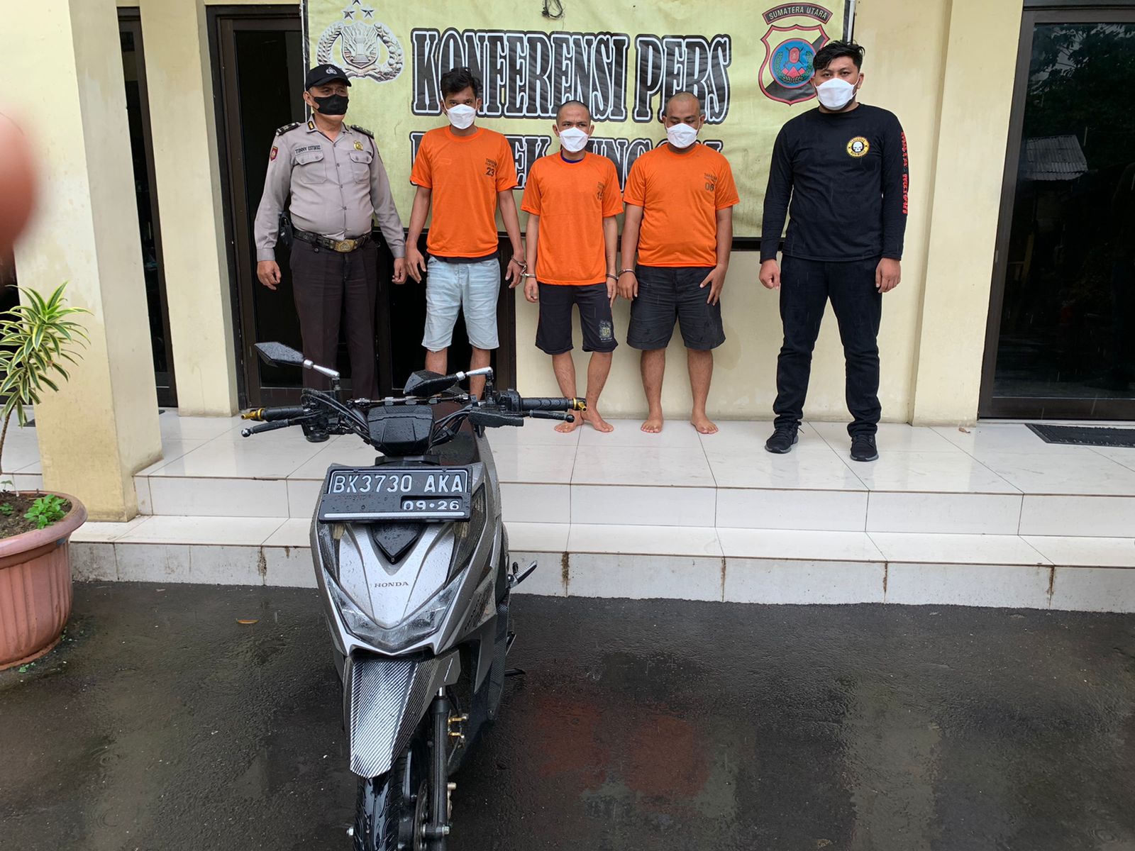 “Ketiga pelaku berinisial RST (19) warga Kampung Bahari Griya Martubung, Kelurahan Besar, Kecamatan Medan Labuhan, RNS (23) warga Jalan Baru, Dusun IV Timur A, Desa Tanjung Gusta, Kecamatan Sunggal dan SRN (21) warga Jalan Pintu Tol Medan Binjai, Gang Gotong Royong, Kelurahan Kampung Lalang, Kecamatan Sunggal dalam penyergapan secara terpisah,” kata Kapolsek Medan Sunggal Kompol Chandra Yuda Pratama melalui Kanit Reskrim AKP Budiman Simanjuntak, Senin ( 20/12/2021)