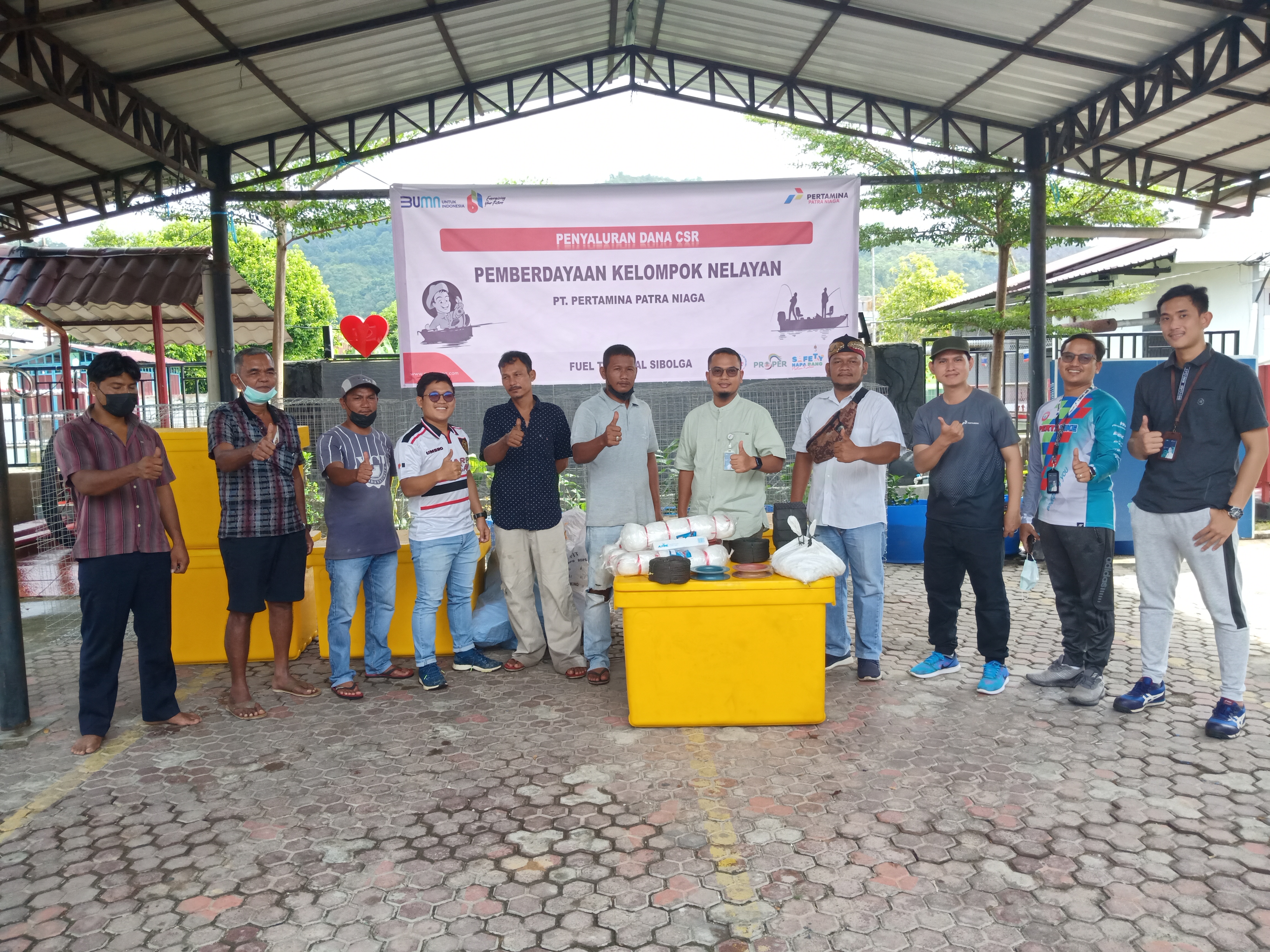 PT. Pertamina Patra Niaga Fuel Terminal Sibolga menyalurkan Dana CSR Perberdayaan Kelompok Nelayan yang bekerjasama dengan Forum Pemuda Peduli Pantai Dan Kelautan (FP3K) Sibolga dan Tapteng. Sabtu (23/1/2022).