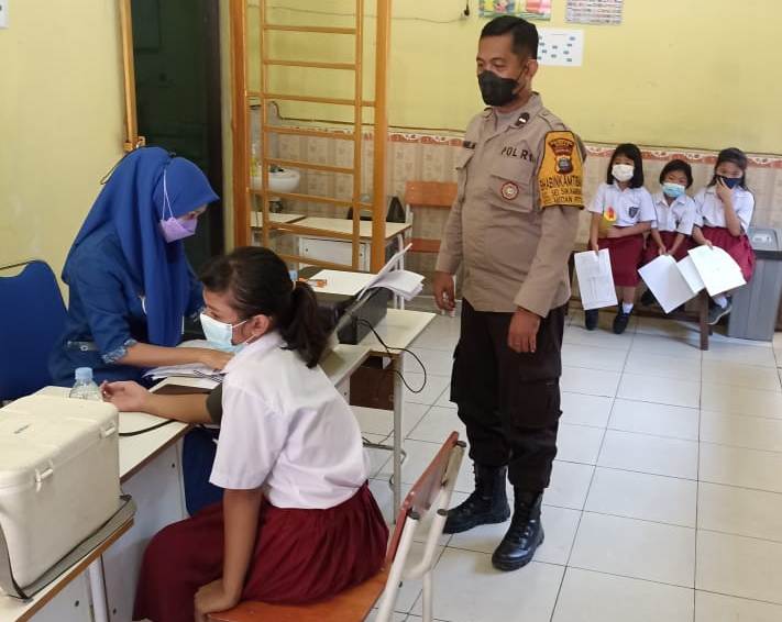 Polsek Medan Baru melaksanakan kegiatan vaksinasi Siswa/Siswi SD Swasta Cenderamata Jalan Pabrik Padi, Kelurahan SP. Timur 1, Kecamatan Medan Petisah, Jumat (04/3/2022).