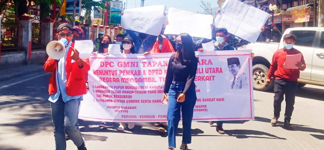 Sementara itu Frimus Nababan selaku koordinator aksi demo sekaligus Ketua GMNI Taput menyebutkan kelangkaan pupuk bersubsidi diakibatkan kurangnya kebijakan pemerintah yang mendukung kepentingan masyarakat. Sehingga kesempatan itu digunakan oknum-oknum bermain curang untuk mengambil keuntungan pribadi yang merugikan masyarakat petani.