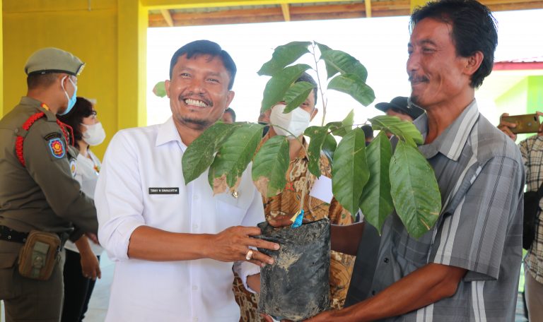 Adapun bibit yang dibagikan adalah alpukat, aren, duku label biru, jengkol, kayu manis, matoa, nangka, dan rambutan yang telah disertifikasi dengan jumlah