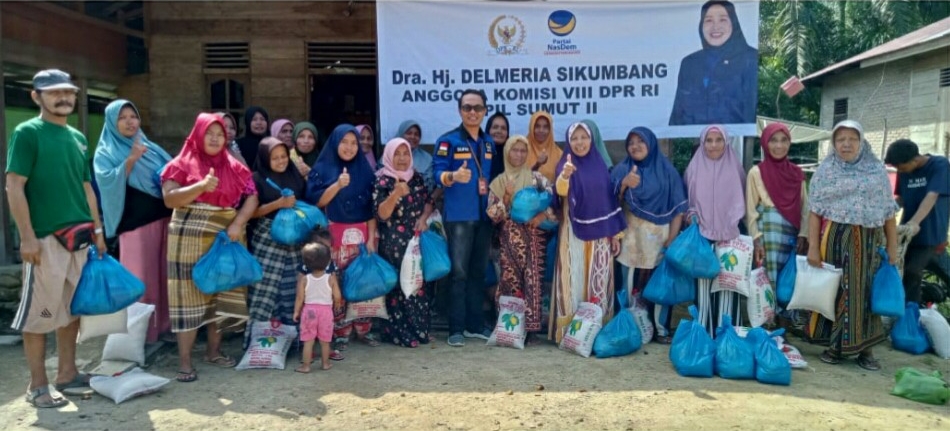 Delmeria Sikumbang melalui tenaga ahli Syufriansah Pasaribu mengatakan, penyaluran sembako ini bertujuan untuk membantu masyarakat yang membutuhkan, jenis paket sembako yang kita salurkan tersebut yaitu Beras, Minyak Goreng, Gula Pasir, Kopi dan Mie instan.