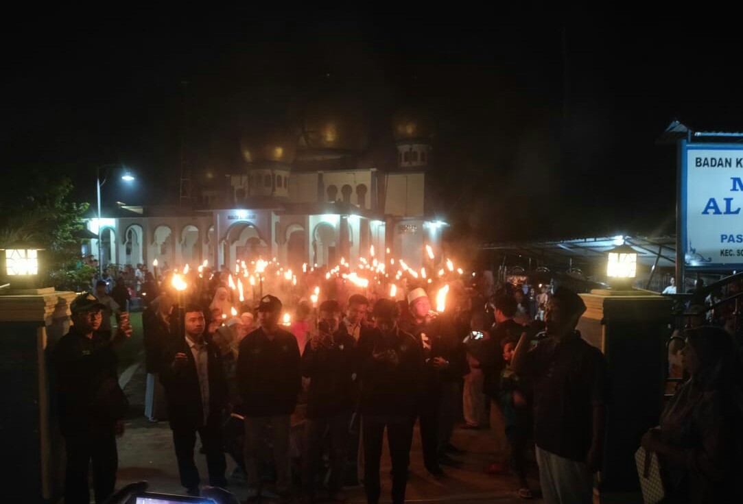 Usai melaksanakan zikir dan sholawatan, dilanjutkan dengan pelepasan pawai obor yang diikuti ratusan peserta terdiri dari siswa MIS NU Pasar Sorkam, MIS Tarbiyatul Ikhwan, Mahasiswa UIN Padang Sidempuan, Serta Masyarakat. Pawai obor tersebut lansung dilepas oleh Camat Sorkam Barat Agus Harianto, S,STP