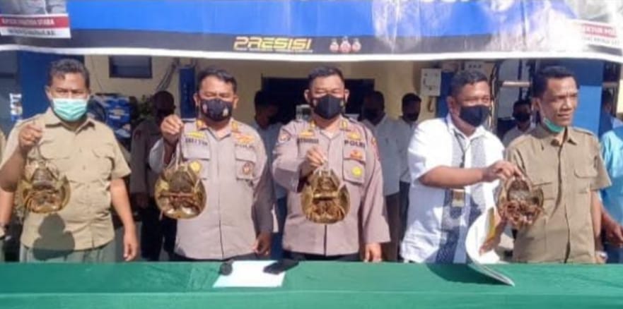 Herwansyah mengungkapkan, modus operandi yang di lakukan tersangka adalah dengan mengumpulkan Belangkas/Ketam Tapak Kuda dan menjeratnya menggunakan jaring.