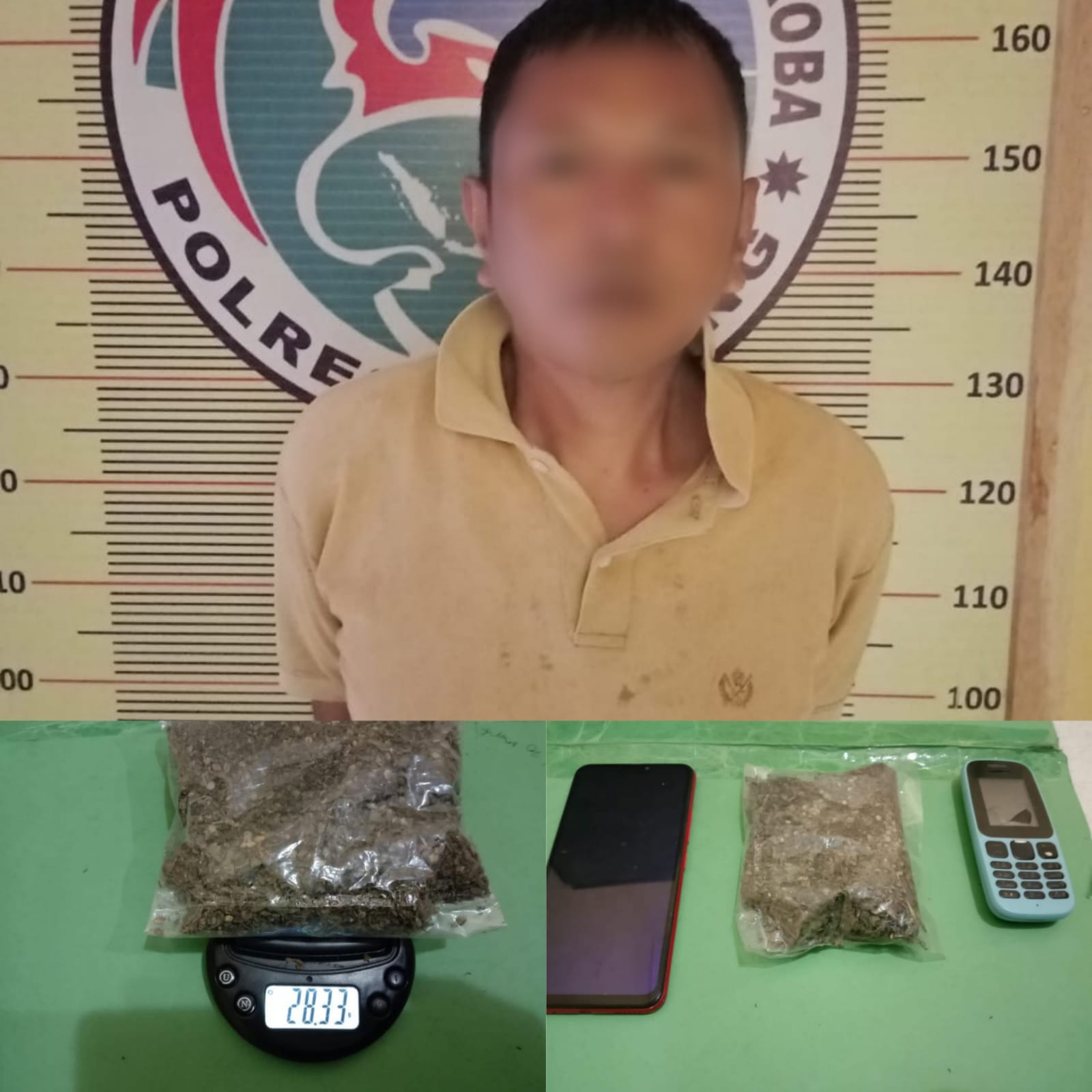 “Pelaku berhasil diamankan berdasarkan hasil informasi dari masyarakat. Kemudian saat dilakukan penggeledahan terhadap pelaku petugas menemukan 1 buah plastik gula warna bening yang berisikan ganja dengan berat 28.33 gram, 1 unit handphone merek vivo warna merah, dan 1 unit handphone merek nokia, serta 1 unit sepeda motor Honda beat warna hitam tanpa plat yang dikendarai pelaku ke TKP,” ucap Gurning pada wartawan Selasa (11/10/2022).