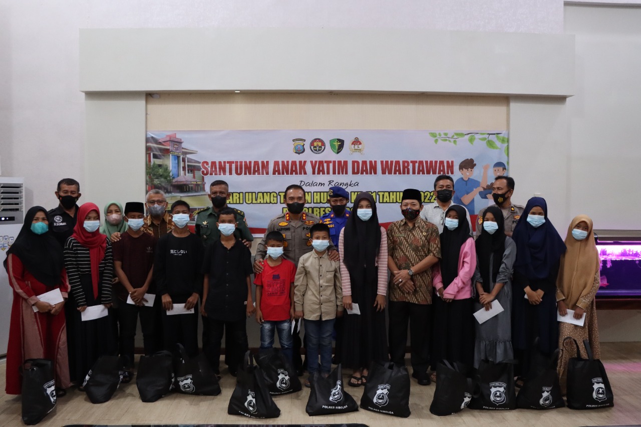 Menyambut Hari Ulang Tahun Humas ke 71 Tahun 2022, Humas Polres Sibolga bagi sembako bagi anak yatim piatu di lobby Darja Arya Racana Polres Sibolga. Kamis (27/10/2022).