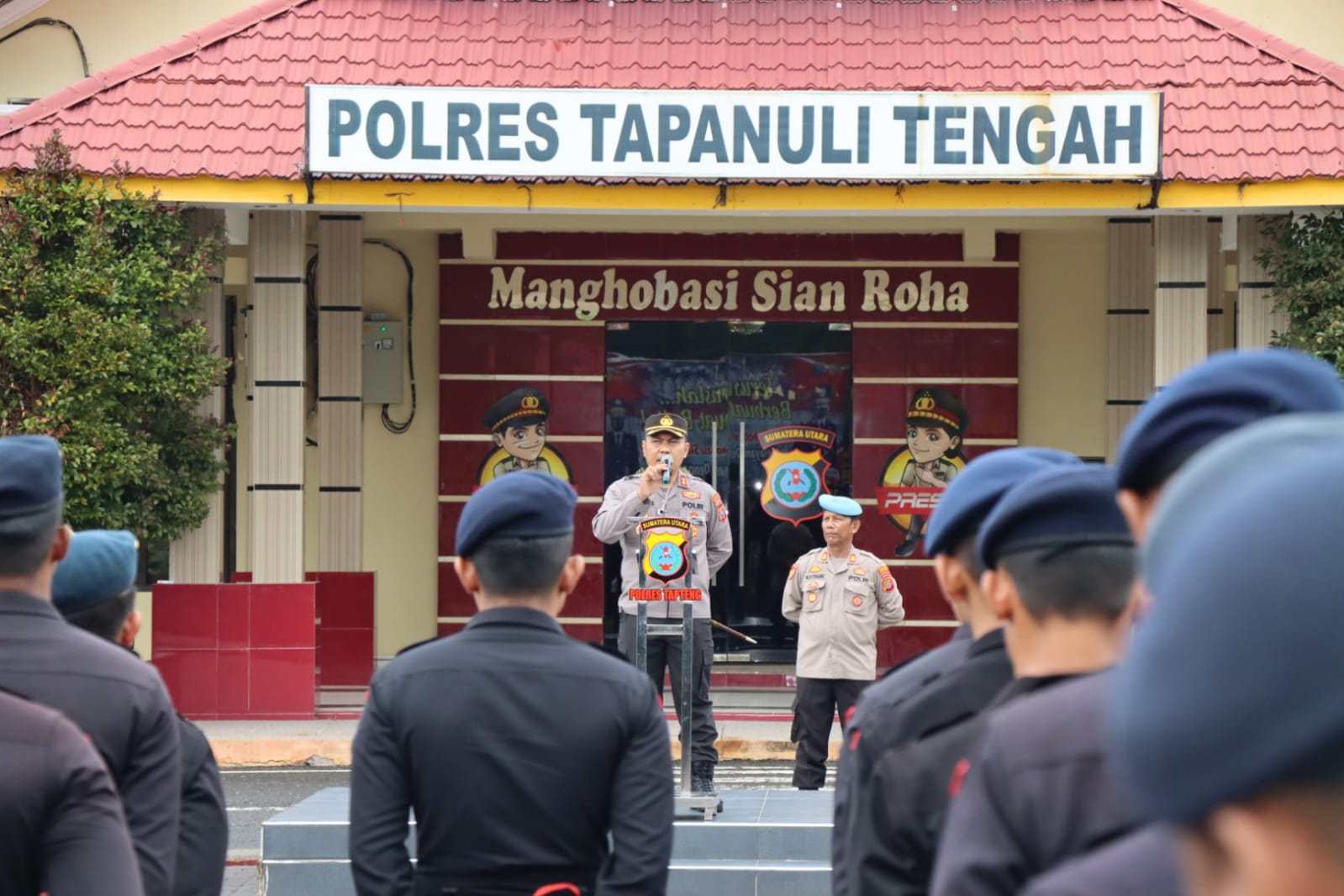 Kapolres Tapanuli Tengah, AKBP Jimmy Christian Samma, memimpin apel kesiapan BKO pengamanan kunjungan kerja Wakil Presiden Republik Indonesia Prof. Dr. (H.C.) K.H. Ma’ruf Amin di Barus, Kabupaten Tapanuli Tengah, Senin (13/2/2023).