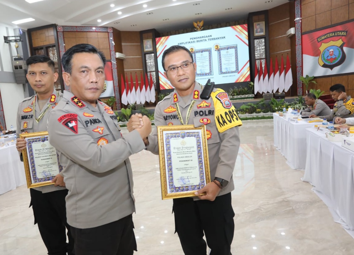 Adapun piagam penghargan tersebut langsung diserahkan Kapolda Sumut Irjen Pol. RZ. Panca Putra kepada Kapolres Sibolga AKBP Taryono Raharja sebagai Polres terbaik peringkat III dalam amplifikasi berita terbanyak pada Tribratanews.polri.go.id dan Humas.polri.go.id yang dilaksanakan di Aula Tribrata Lantai I Mapolda Sumut.
