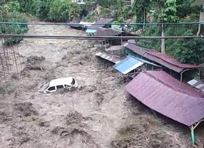 Bahkan, terlihat juga satu unit mobil berwarna putih hanyut dibawa banjir bandang tersebut.