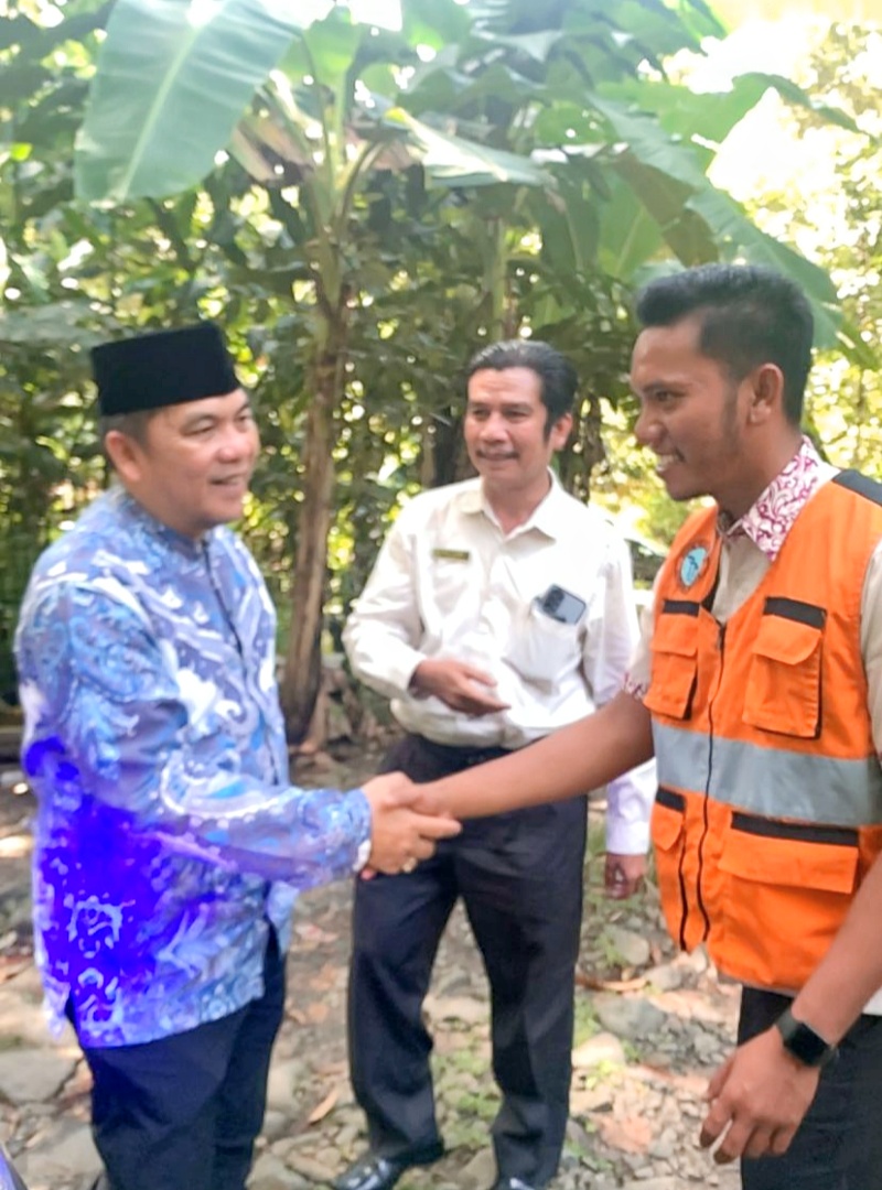 Pj Bupati Tapanuli Tengah (Tapteng) Elfin Elyas turun langsung ke lapangan melakukan survei ke sumber air minum untuk perbaikan saluran pipa PDAM Mual Nauli di Desa Hutagurgu, Kecamatan Sibabangun pada hari Kamis (13/7)