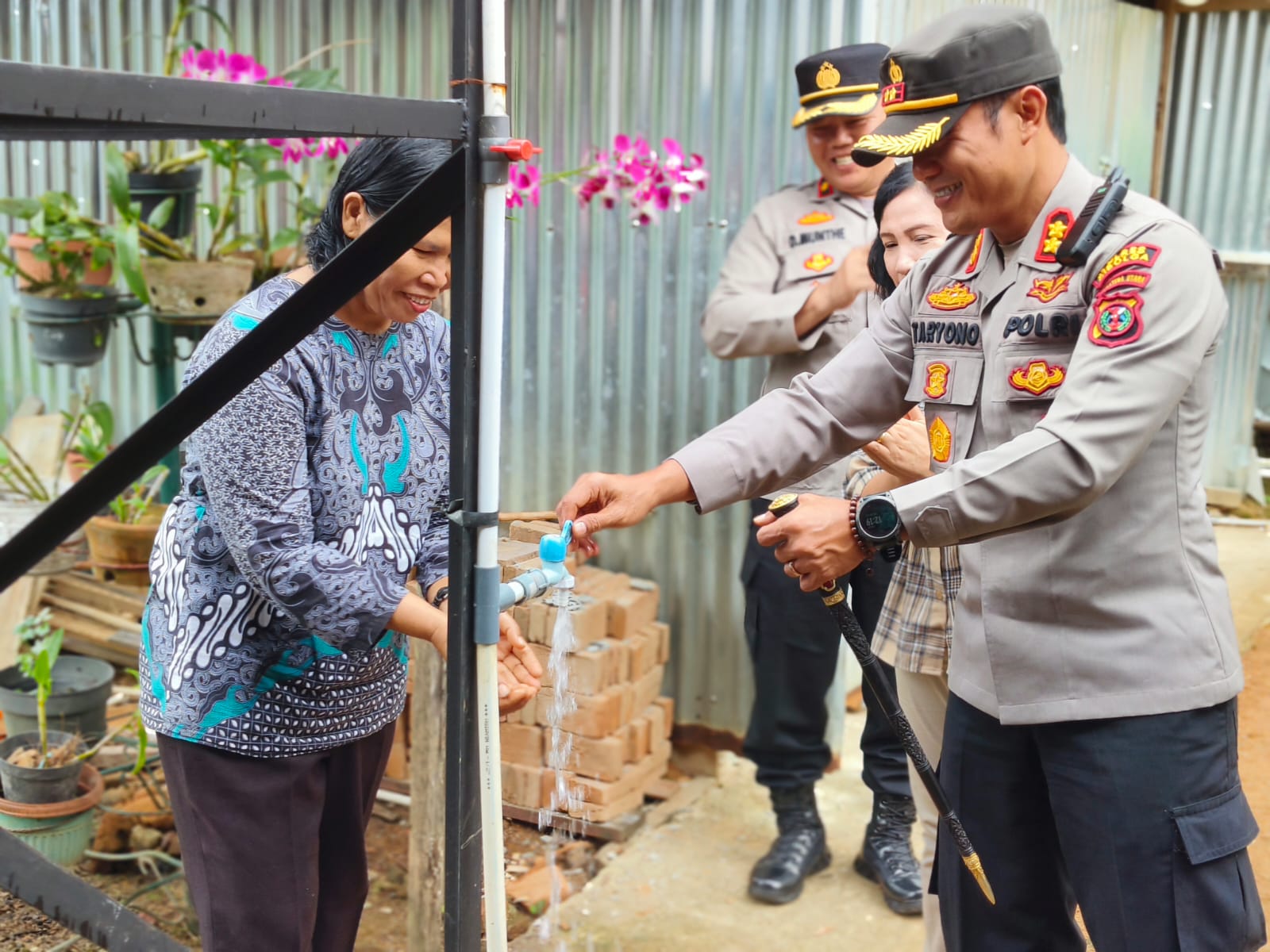SIBOLGA NEWS – Kapolres Sibolga AKBP Taryono Raharja bersama jajaranya memberikan bantuan sumur bor dan pompa air untuk yayasan Rehabilitas Bersumberdaya Masyarakat (RBM) Hephata HKBP Distrik IX Sibolga Tapteng, Sumatera Utara, Kamis (31/8/2023).