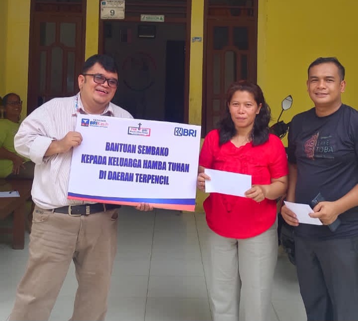 Pengganti Pejabat Sementara (Pgs) Pimpinan Cabang Bank BRI Sibolga, Juni Ando Kristian Saragih, mengatakan bahwa bantuan sembako kepada keluarga hamba tuhan di daerah terpencil (pelayan gereja) tersebut merupakan bentuk program BRI peduli dengan tagline berbagi kasih bersama dari program BRI peduli sesungguhnya membuktikan BRI Cabang Sibolga memiliki kepedulian yang tinggi kepada masyarakat Sibolga dan Kabupaten Tapteng.