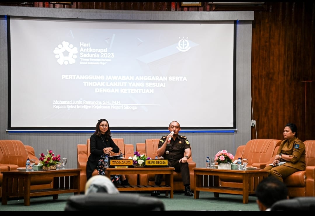 Kegiatan tersebut sebagai bentuk memperingati Hari Anti Korupsi Sedunia (Hakordia) Tahun 2023, dengan mengusung tema ‘Sinergitas dan Penerangan Hukum, Pertanggungajawaban Anggaran Serta Tindak Lanjut Yang Sesuai Dengan Ketentuan’ yang berlangsung di ruang rapat utama Gedung DPRD Kota Sibolga.