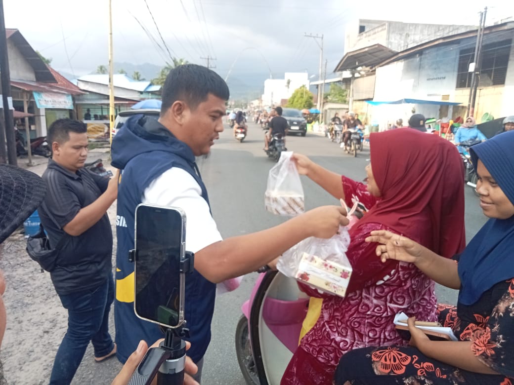 Dewan Pimpinan Daerah (DPD) Partai NasDem Kabupaten Tapanuli Tengah berbagi 1.000 bungkus takjil kepada masyarakat dan juga warga yang melintas dari depan Kantor DPD Partai NasDem Tapanuli Tengah, tepatnya di Jalan Sibolga-Padangsidimpuan, Kecamatan Pandan, Kabupaten Tapanuli Tengah (Tapteng), Sumatera Utara, pada Senin (18/3/2024) sore.