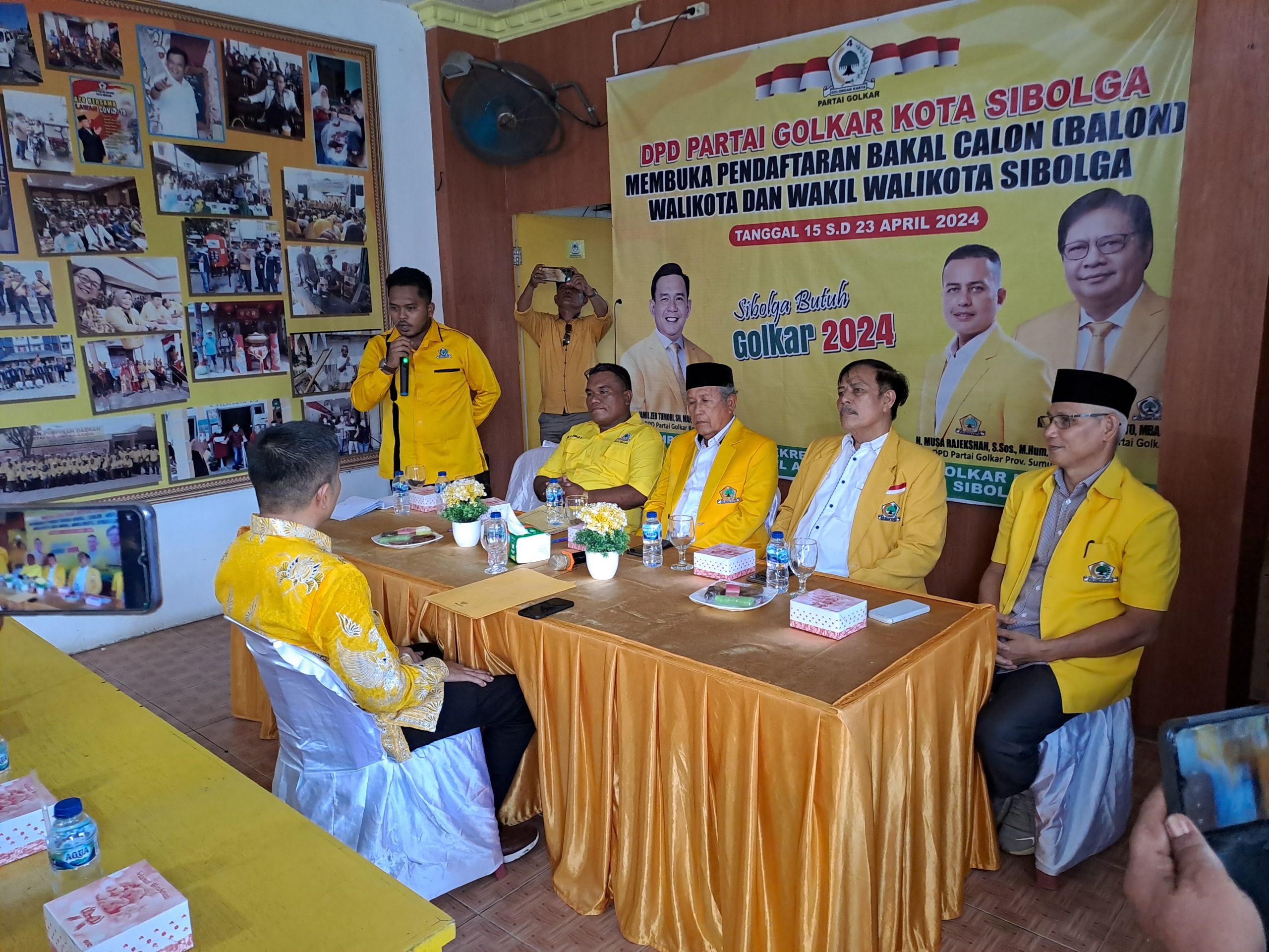 Robinsar Sinaga menyampaikan berkas pendaftaran Bakal Calon Wali Kota dan Wakil Wali Kota Sibolga ke kantor DPD II Partai Golkar Sibolga. Jumat (19/4/2024)