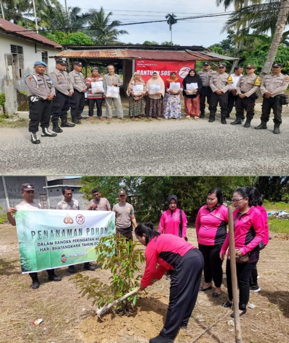 Dalam rangka menyambut HUT Bhayangkara ke-78, Kapolsek Sorkam AKP Edy Suranta bersama personel melaksanakan kegiatan bakti sosial berupa pemberian paket sembako kepada warga kurang mampu di wilayah hukum Polsek Polsek Sorkam. Senin (24/06)