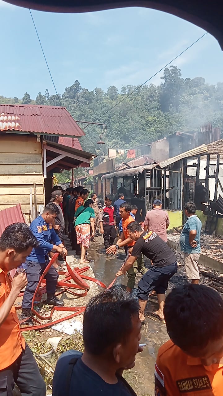 Kebakaran menghanguskan empat rumah warga di Lingkungan 1 Tano Ponggol, Kelurahan Sibuluan Nalambok, Kecamatan Sarudik, Kabupaten Tapanuli Tengah, Selasa (2/7/2024).