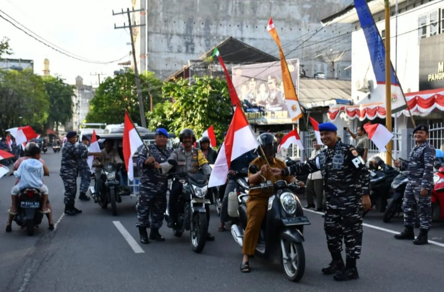 SIBOLGA NEWS – Menjelang Dirgahayu Republik Indonesia ke 79, Komandan Pangkalan TNI AL (Lanal) Sibolga membagikan bendera Merah Putih kepada masyarakat baik untuk pengendara roda dua maupun roda empat yang melintasi di Jalan S. Parman tepatnya di Mako Lanal Sibolga.