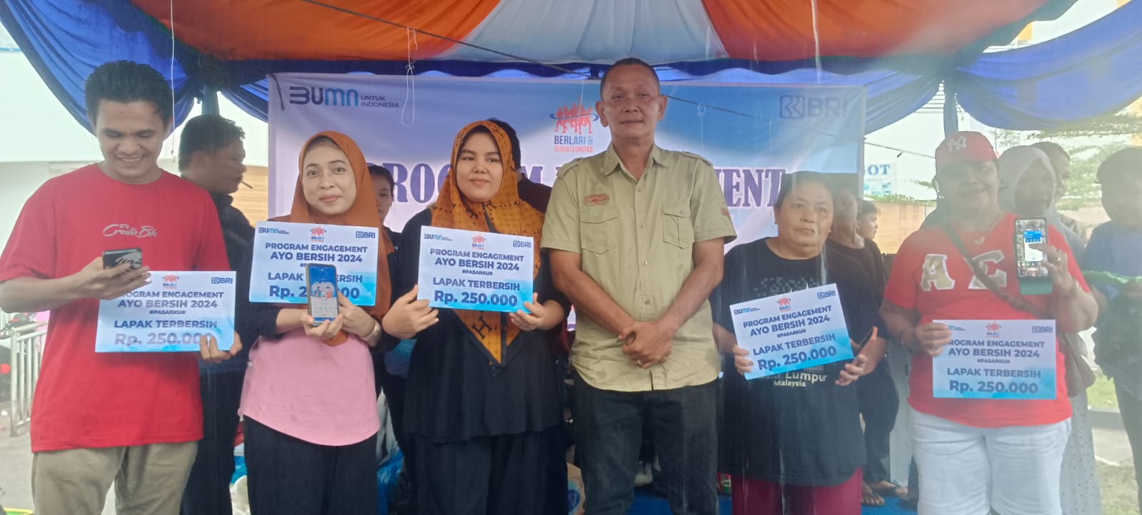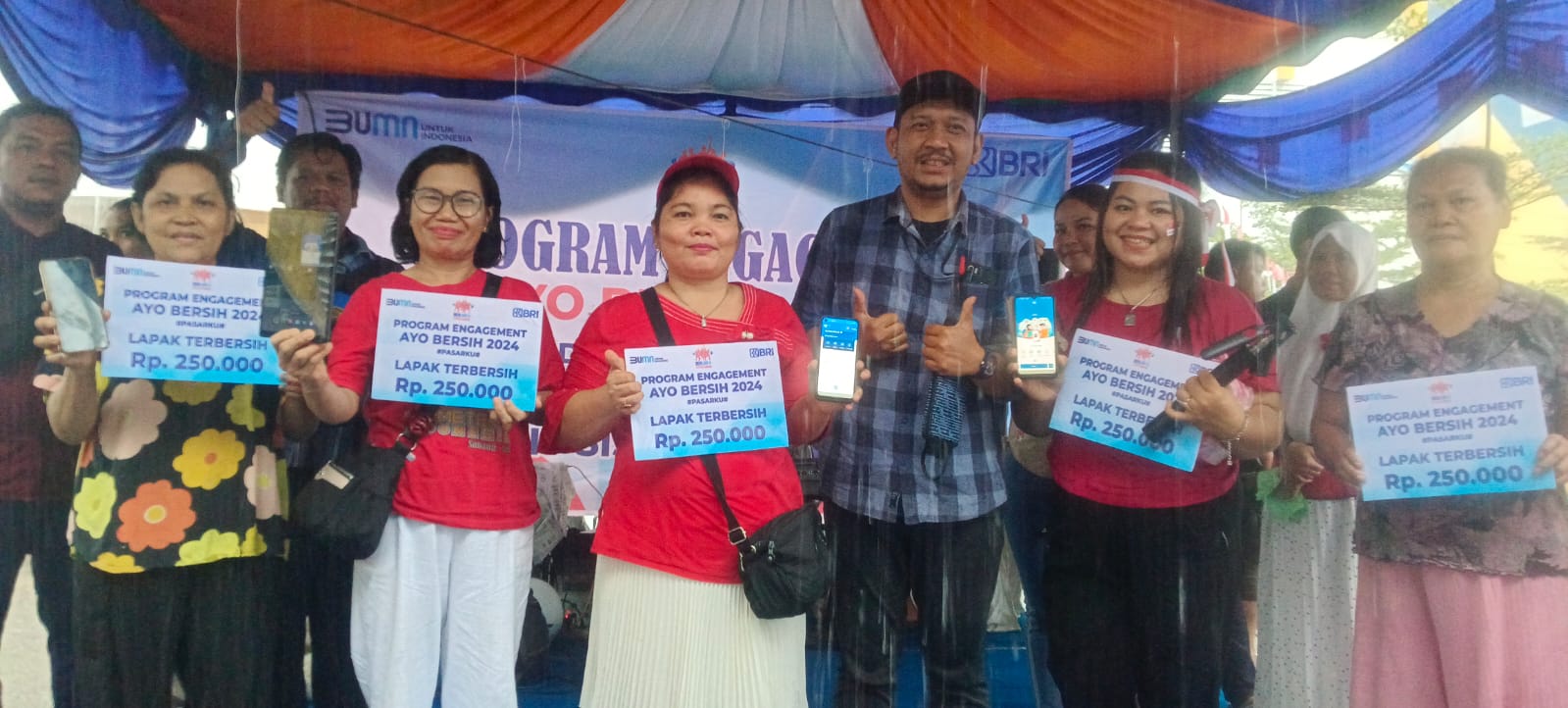 “Selain jadi percontohan, pedagang pasar yang sudah menghiasi lapak atau pelatarannya dalam menyambut hari kemerdekaan Republik Indonesia yang ke 79 Tahun ini, juga akan kami berikan hadiah berupa uang tunai dan doorprize lainnya dengan syarat sudah mempunyai tabungan BRI,” katanya sembari menyatakan bagi pedagang pasar yang belum mempunyai tabungan BRI bisa dibuat langsung saat mengikuti kegiatan.