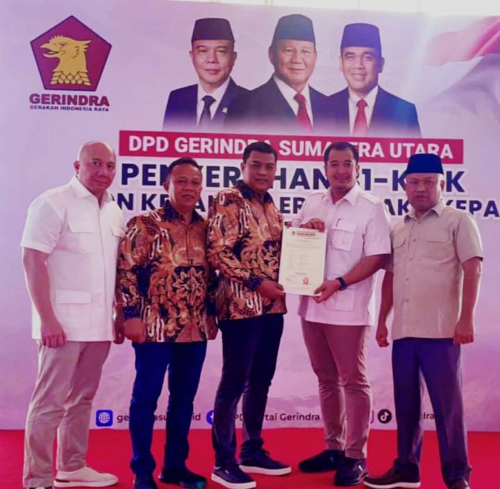 Surat dukungan dari DPP Gerindra tersebut diserahkan oleh Ketua DPD Gerindra Sumut Ade Jona Prasetyo, bersama pengurus DPP Sabam Rajagukguk dan Sekjend Gerindra Sumut Sugiatno Santoso di Kantor DPD Gerindra Sumut.