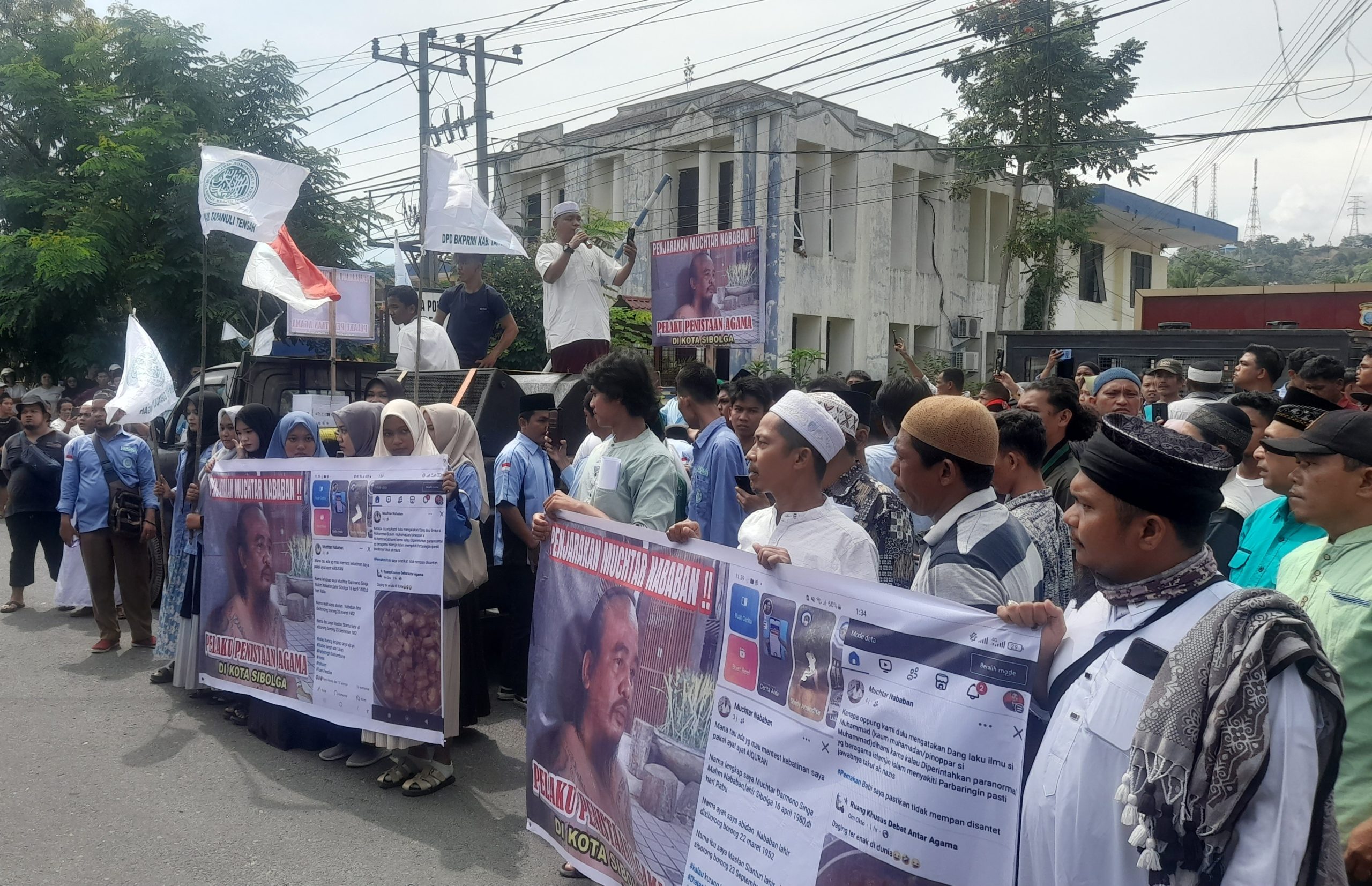 Aliansi umat muslim Sibolga mendesak Kapolres Sibolga agar memproses kasus penistaan agama dan menangkap eks anggota DPRD, Muchtar Nababan.