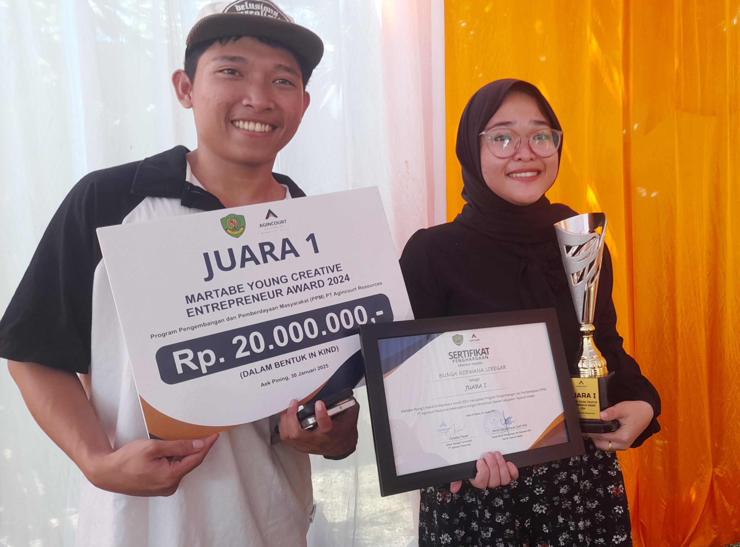 TAPSEL NEWS – Bunga Nirwana Siregar seorang pengusaha UMKM wirausaha muda berhasil meraih juara 1 di Event Young Creative Entrepreneur Award 2024 di PT Agincourt Resources, Tambang Emas Martabe, Batang Toru, Kabupaten Tapsel, Sumatera Utara.