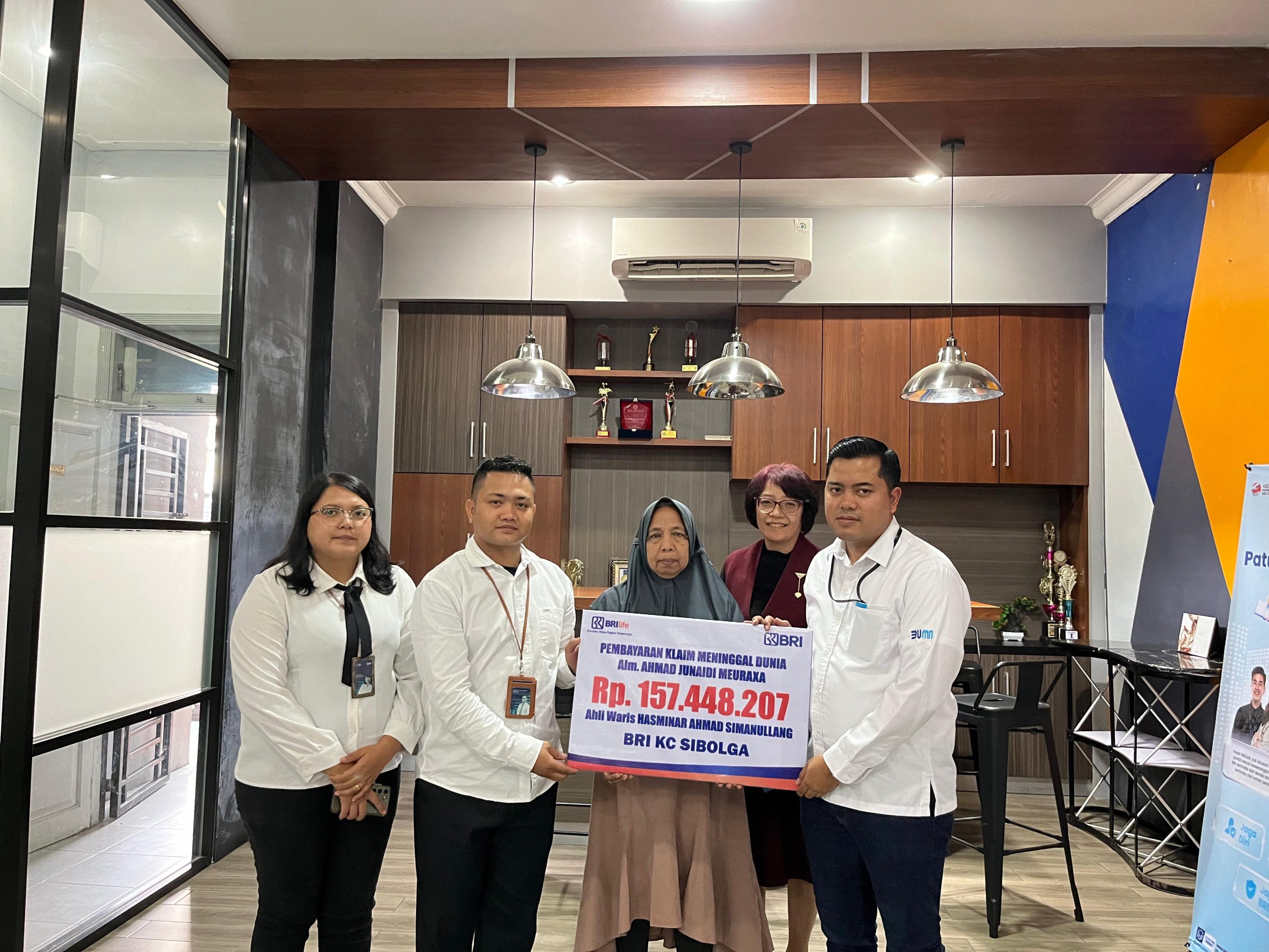 SIBOLGA NEWS – PT Asuransi BRI LIfe (BRI Life) membayar klaim nasabah meninggal dunia almarhum Ahmad Junaidi Meuraxa senilai Rp 157.448.207 kepada ahli warisnya Hasminar Ahmad Simanullang yang diserahkan di Kantor Cabang BRI Kota Sibolga, Sumatera Utara.