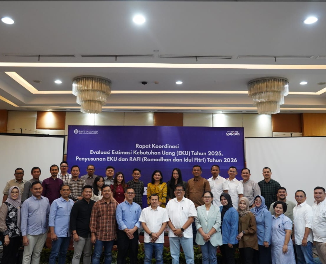 Rapat kordinasi evaluasi Estimasi Kebutuhan Uang (EKU) 2025 dan penyusunan EKU 2026 menjelang Hari Raya Idul Fitri yang dilaksanakan di Hotel Cambridge Medan, Kota Medan, Sumatera Utara yang itu dihadiri Asisten Manejer Operasional dan Layanan BRI BO Sibolga Susanti Situmorang.